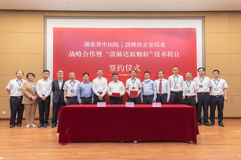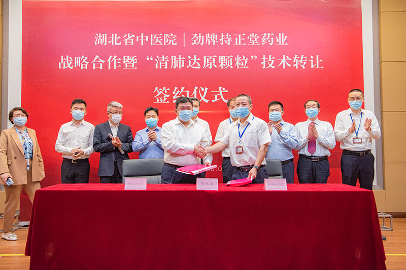 会上,湖北省中医院院长何绍斌与劲牌有限公司董事长吴少勋,及劲牌持正堂药业总经理李清安,分别签订了“湖北省中医院与劲牌持正堂药业有限公司共同振兴发展湖北省中医药事业的战略合作协议”和“‘清肺达原颗粒’技术转让与新药临床前研究合作协议”。